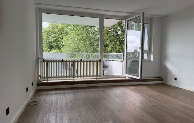 Die frisch renovierte Zwei-Zimmer Wohnung liegt im 2. Obergeschoss und ist durch einen Aufzug oder das Treppenhaus zu erreichen. Über einen Laubengang erreicht man den Wohnungseingang.