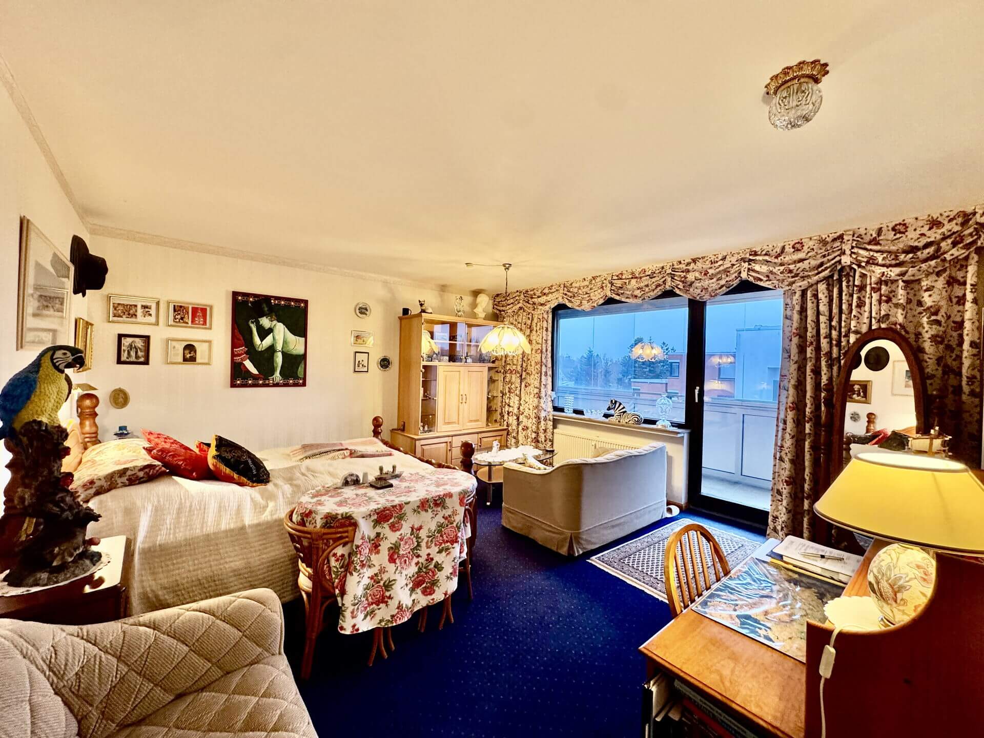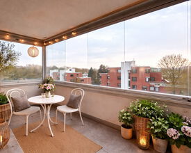 Die Wohnung überzeugt durch ein großzügiges, lichtdurchflutetes Wohnzimmer mit Loggia, die sich dank der Glaselemente ideal auch als Wintergarten nutzen lässt. Sowohl das Wohnzimmer als auch das angrenzende Schlafzimmer sind nach Süden ausgerichtet und profitieren somit den ganzen Tag über von reichlich Tageslicht.