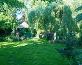 - Idyllisch angelegter Garten mit naturnahem Teich, neuwertiger Pumpe zur Bewässerung, Trauerweide, Gingko etc.