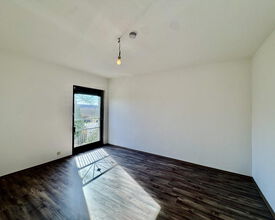 Die Einliegerwohnung erreichen Sie über einen separaten Eingang auf der rechten Seite des Hauses. Im Erdgeschoss befinden sich ein Garderobenraum sowie ein Durchgangszimmer mit Zugang zum Garten. Über eine Treppe gelangen Sie in den Flur des Obergeschosses.