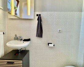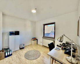 Im ersten Obergeschoss befinden sich drei weitere Räume, die nach Belieben genutzt werden können. Zwei der Räume sind zur Gartenseite ausgerichtet, wobei einer dieser Räume über einen weiteren Balkon verfügt. Der dritte Raum liegt zur Vorderseite des Hauses. Ebenfalls auf dieser Etage befindet sich das Badezimmer, das mit Dusche, Badewanne und Außenfenster ausgestattet ist.
