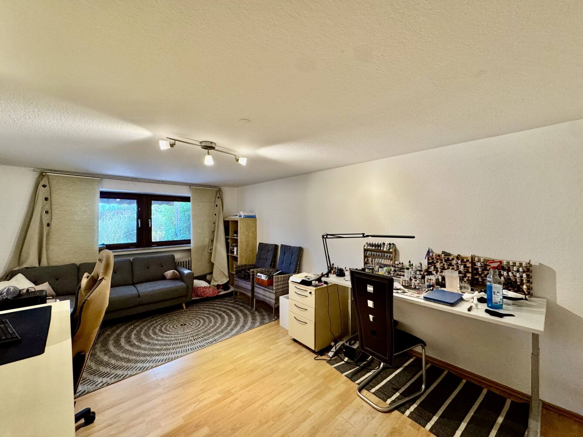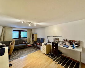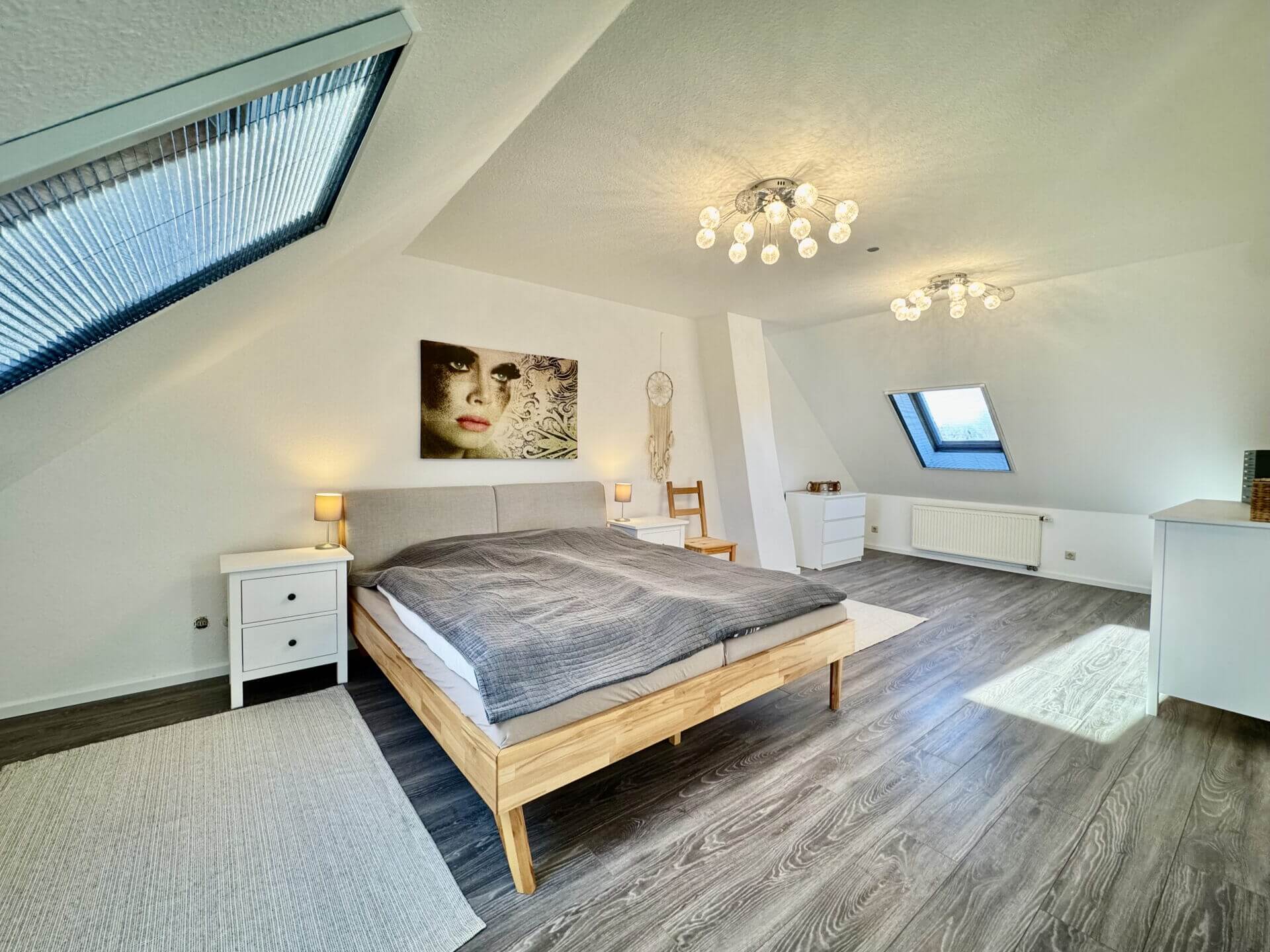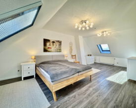 Im Dachgeschoss finden Sie einen weiteren großen Raum, der derzeit als Schlafzimmer mit Ankleidebereich genutzt wird. Im Souterrain befinden sich ein weiterer Raum mit Blick in den Garten, zahlreiche Abstellmöglichkeiten sowie die Heizung und der Hauswirtschaftsraum. Vom Souterrain aus gelangen Sie zudem auf die überdachte Terrasse und in den Garten.