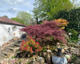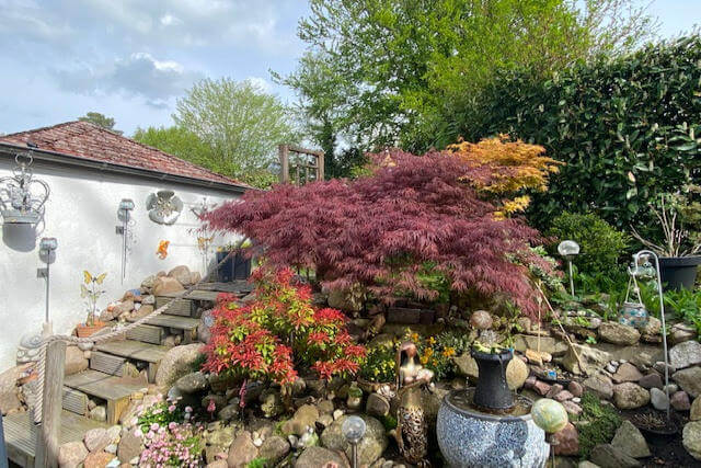 Vom Wohnzimmer gelangt man auf die schöne Terrasse mit reizvollem Gartenanteil.